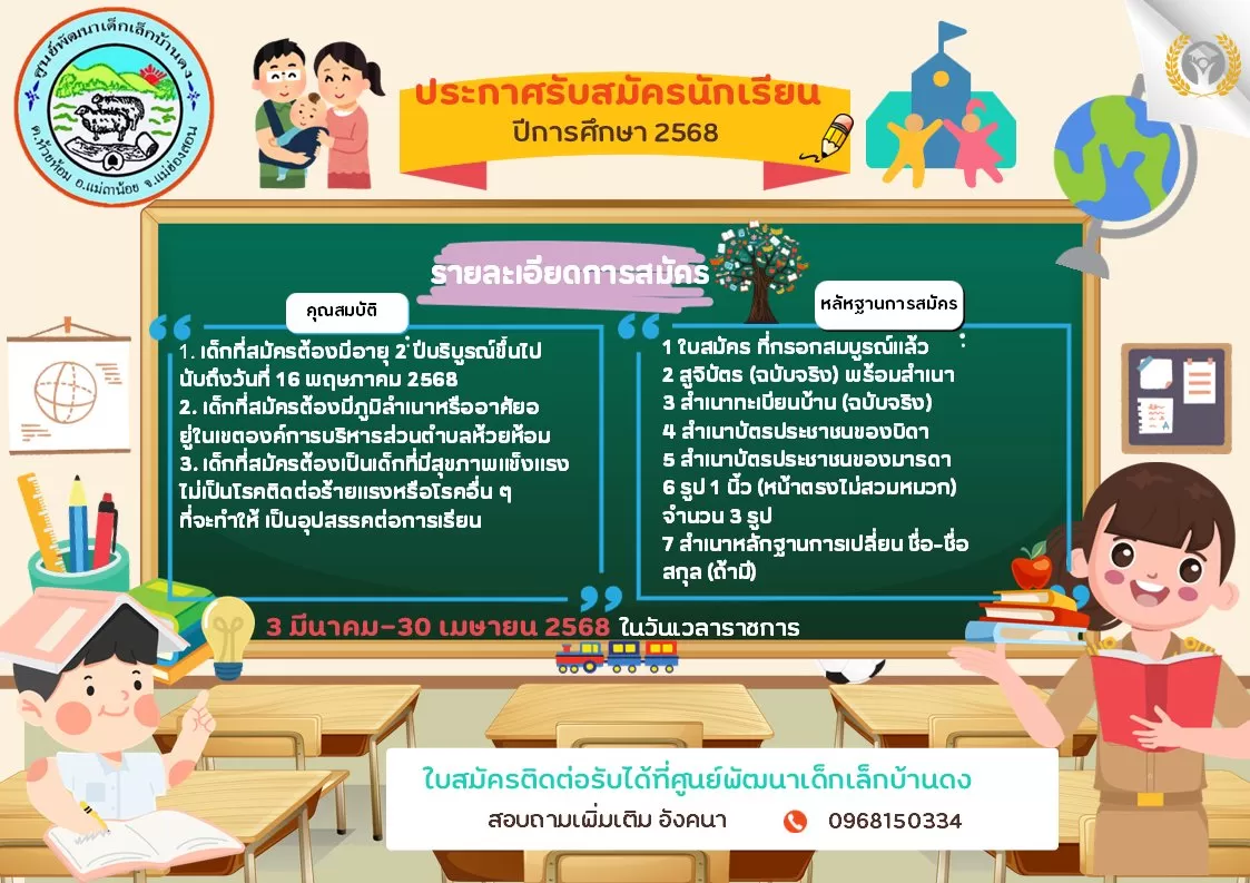 ประชาสัมพันธ์ เปิดรับสมัครเด็กเล็กเข้าเรียนในศูนย์พัมนาเด็กเล็ก สังกัดองค์การบริหารส่วนตำบลห้วยห้อม ประจำปี 2568