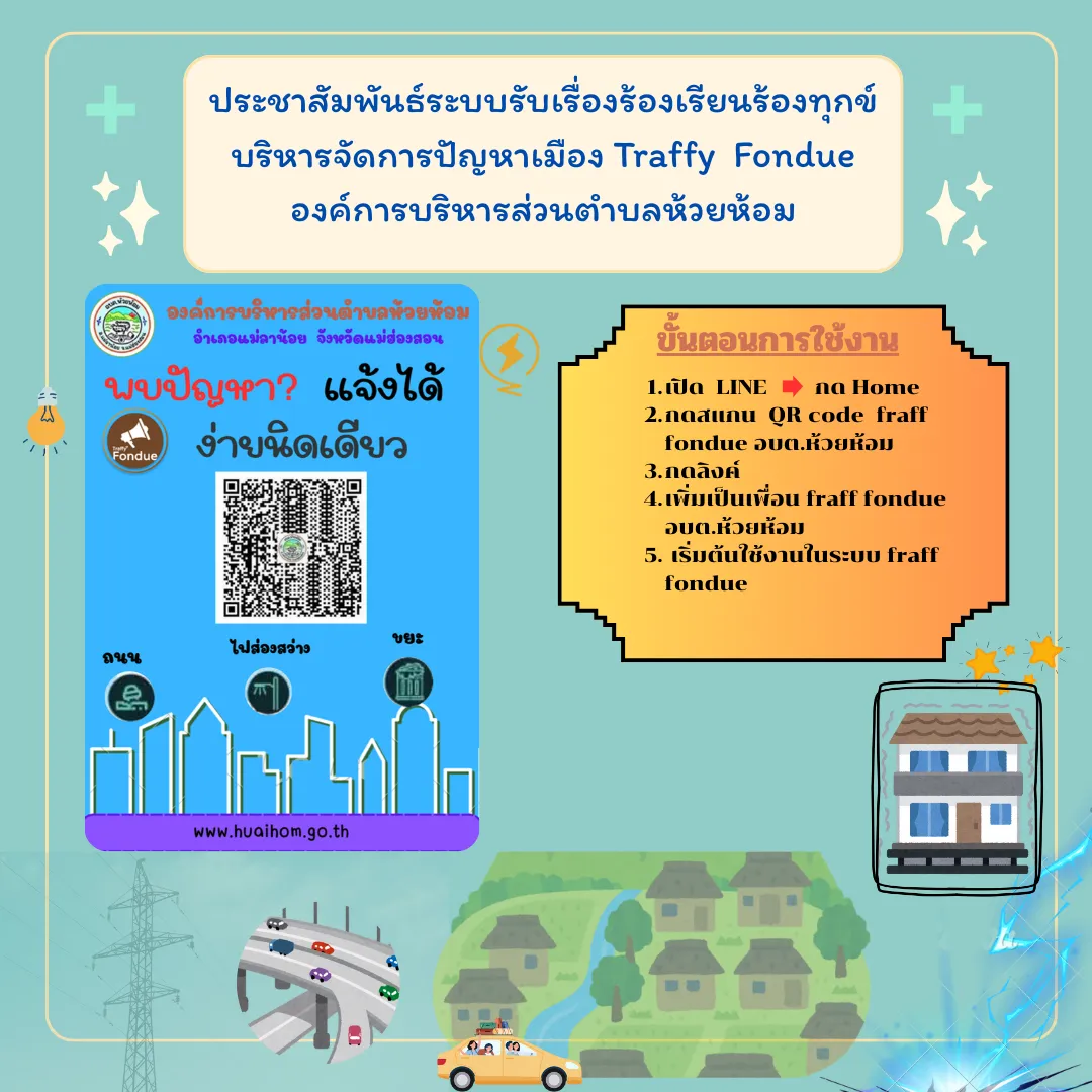 ประชาสัมพันธ์ Traffy fondue องค์การบริหารส่วนตำบลห้วยห้อม