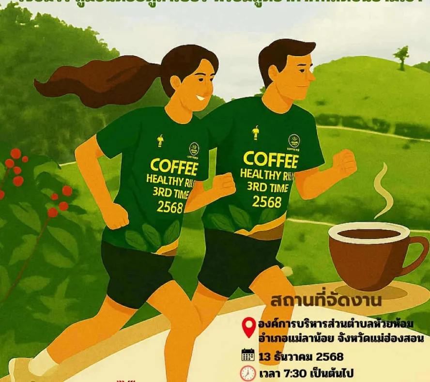 องค์การบริหารส่วนตำบลห้วยห้อม อำเภอแม่ลาน้อย จังหวัดแม่ฮ่องสอน กำหนดกิจกรรมเดิน - วิ่ง เพื่อสุขภาพ 2025 COFFEE HEALTHY RUN 3RD TIME 2025 13 ธันวาคม 2568