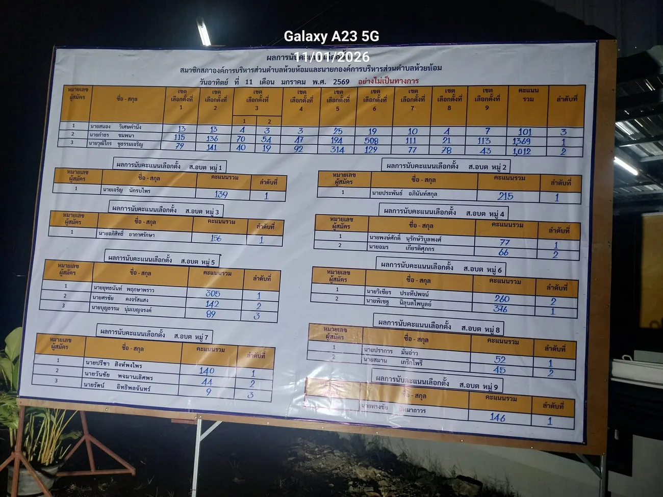 แจ้งผลการนับคะแนนการเลือกตั้งสมาชิกสภาและนายกองค์การบริหารส่วนตำบลห้วยห้อม อย่างไม่เป็นทางการ (ในวันเลือกตั้ง ที่ 11 มกราคม 2569